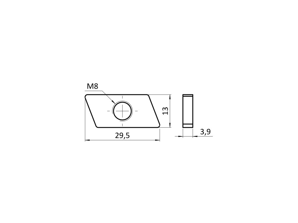 Nerezová závitová doska pre profily 28/15, M8, Nerez A2