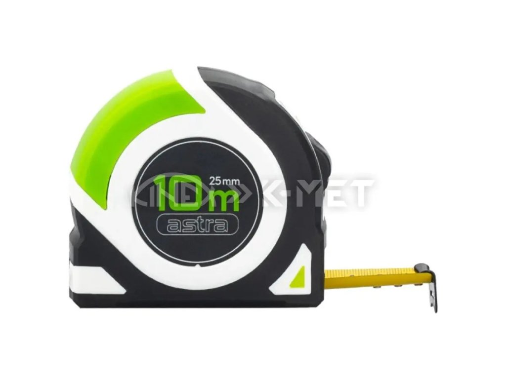 Zvinovací meter s dĺžkou 10 metrov a šírkou pásu 25 mm. Vhodný na presné merania pri práci v dielni aj na stavbe.