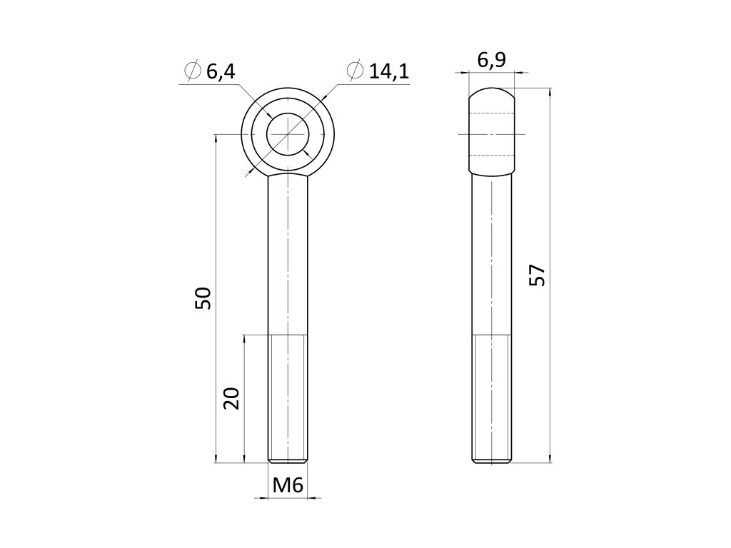 Nerezová skrutka s okom, metrický závit, DIN444, M6x50, čiastočný závit, AISI304