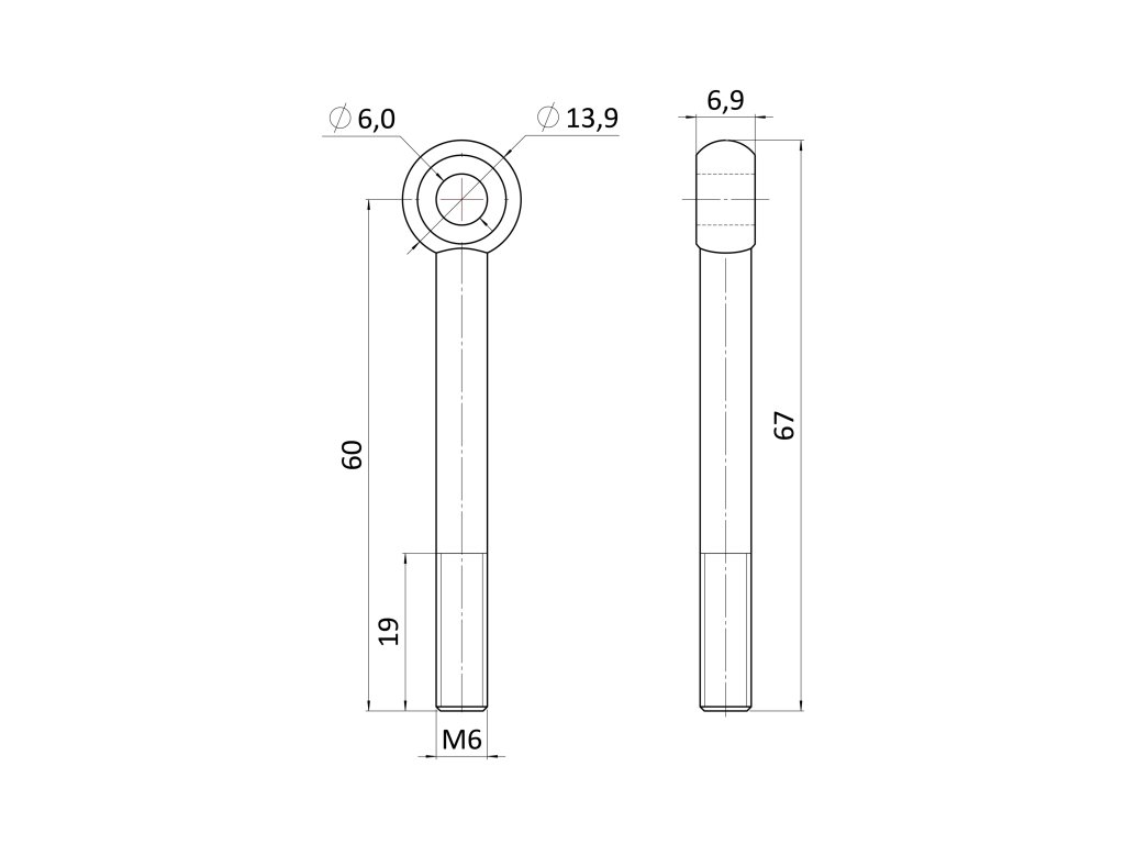 Nerezová skrutka s okom, metrický závit, DIN444, M6x60, čiastočný závit, AISI304