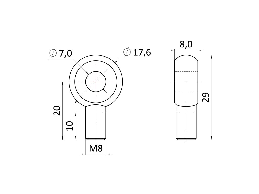 Nerezová skrutka s okom, metrický závit, DIN444, M8x20, celozávit, AISI304