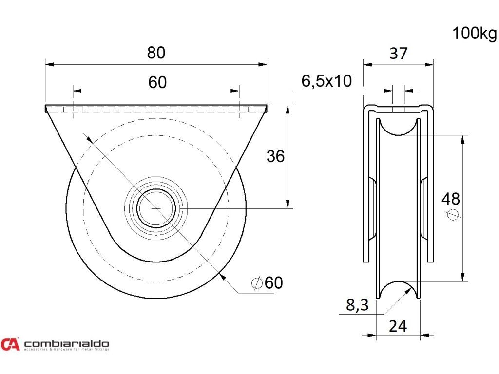 Vodiace koliesko ø 60mm s oporou Combi Arialdo, pre profil C902/16, nosnosť 100kg