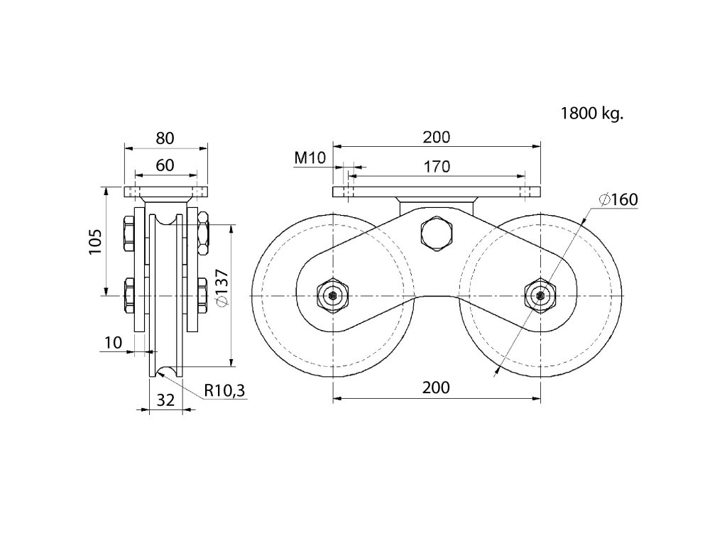 vodiaca kladka dvojložisková ø 160mm Combi Arialdo, pre profil C902/20, nosnosť 1900 kg, Zn