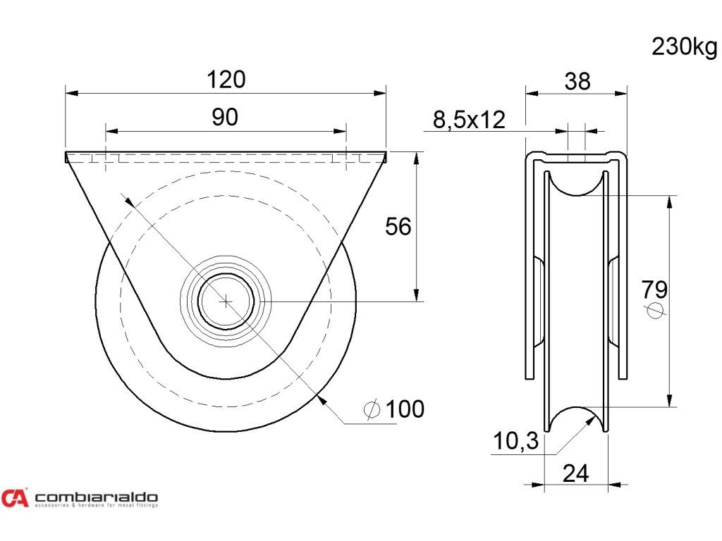 Vodiace koliesko ø 100mm s oporou Combi Arialdo, pre profil C902/20, nosnosť 230kg