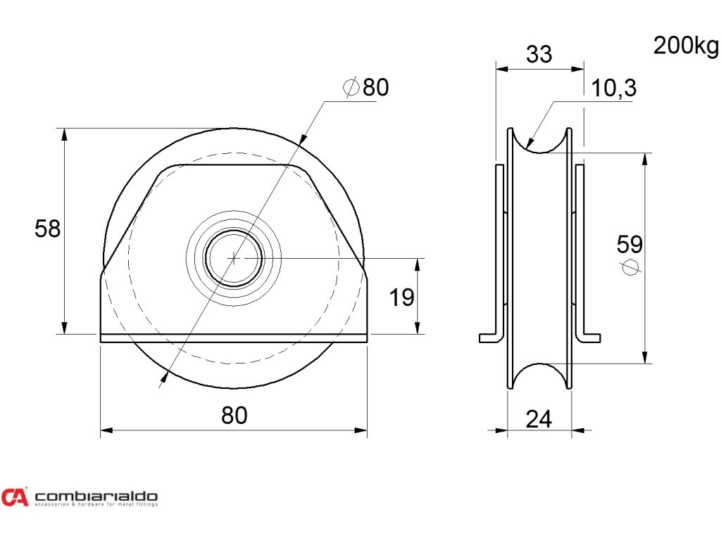 Koliesko od popredného talianského výrobcu Combi Arialdo. Povrchová úprava- pozink. Použitie pre posuvné brány.Počet kusov v balení - 6.
