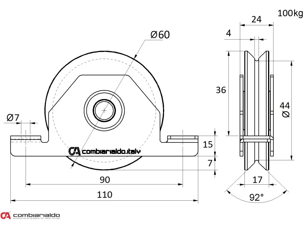 Vodiace koliesko ø 60mm pre zapustenie do jokla, V profil, nosnosť 100kg,