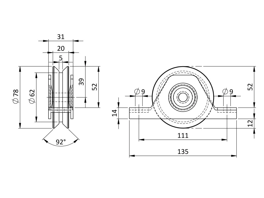 Vodiace koliesko ø 80mm pre zapustenie do jokla, V profil, nosnosť 200kg