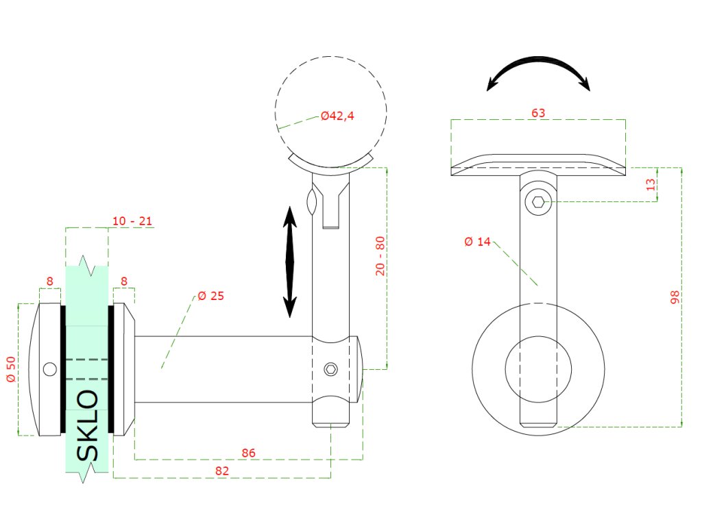 držiak madla s kĺbom na trubku ø 42.4mm, brúsená nerez K320 /AISI304