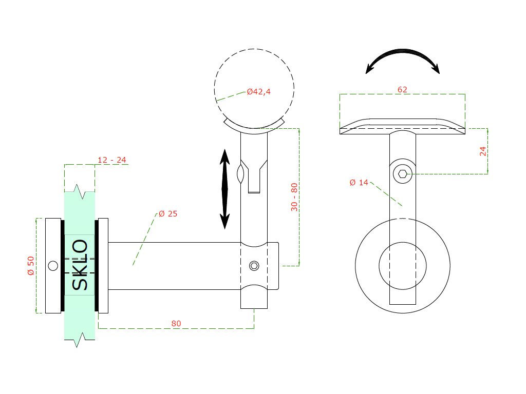 držiak madla s kĺbom na trubku ø 42.4mm, brúsená nerez K320 /AISI304