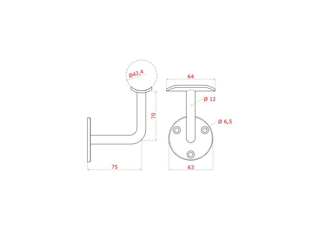 držiak madla na stenu na trubku ø 42.4mm, brúsená nerez K320 /AISI304Dodatočné parametre