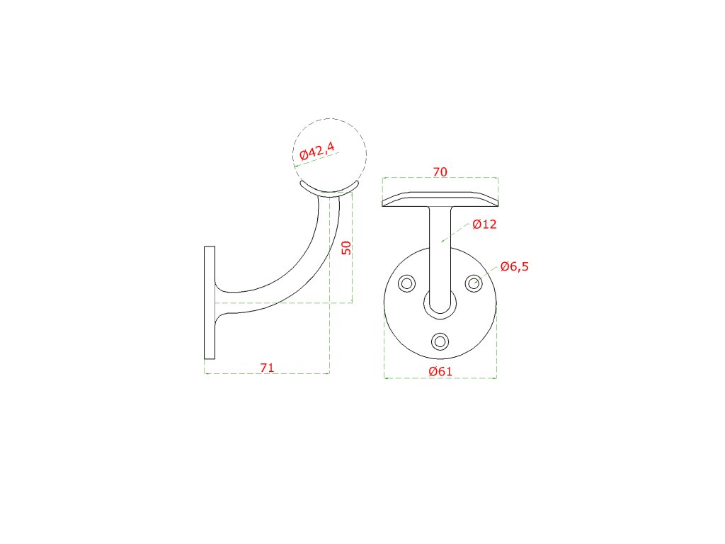 držiak madla na stenu na trubku ø 42.4mm, brúsená nerez K320 /AISI304Dodatočné parametre