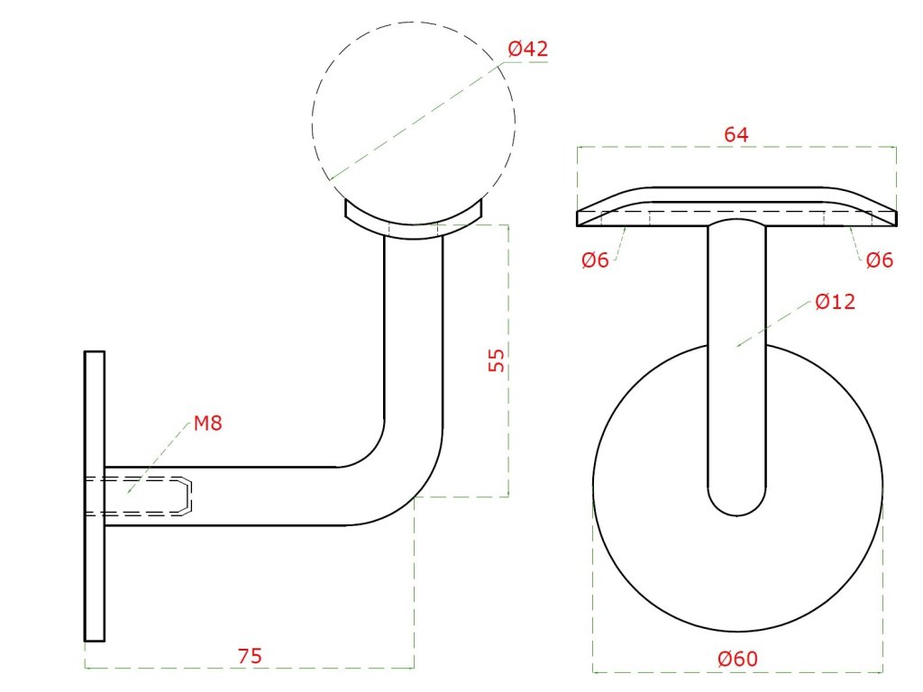 držiak madla na stenu na trubku ø 42.4mm bez dier, zadný vnútorný závit M8, brúsená nerez K320 /AISI304Dodatočné parametre