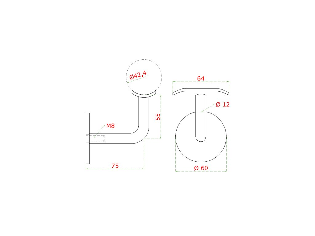 držiak madla na stenu na trubku ø 42.4mm bez dier, zadný vnútorný závit M8, brúsená nerez K320 /AISI316