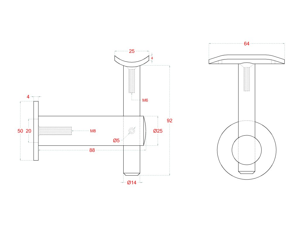 držiak madla pevný /ploché uchytenie na stenu M8 / madlo ø42.4 mm, brúsená nerez K320/AISI304Dodatočné parametre