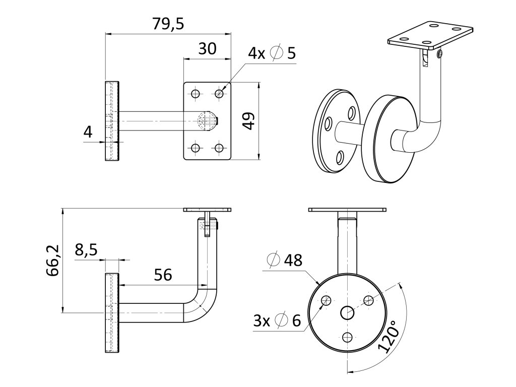 držiak madla so skrátenou vzdialenosťou od steny - s kĺbom, na jakel s krytkou, brúsená nerez K320 /AISI304