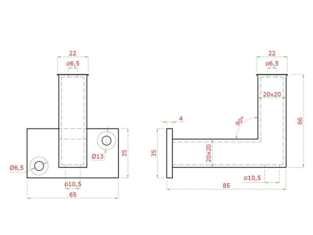 držiak madla na stenu (66x85mm), brúsená nerez K320 /AISI304