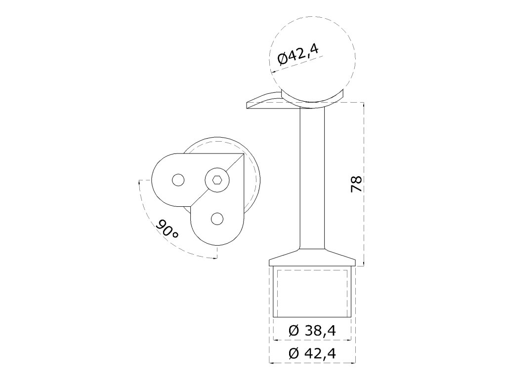 držiak madla pevný na trubku ø 42.4mm (78x64mm, 90° uhol), brúsená nerez K320 /AISI304Dodatočné parametre