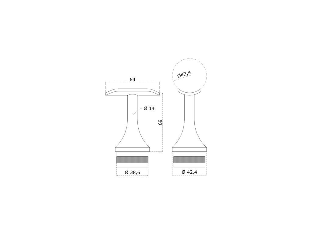 držiak madla pevný na trubku ø 42.4mm (69x64mm), brúsená nerez K320 /AISI304