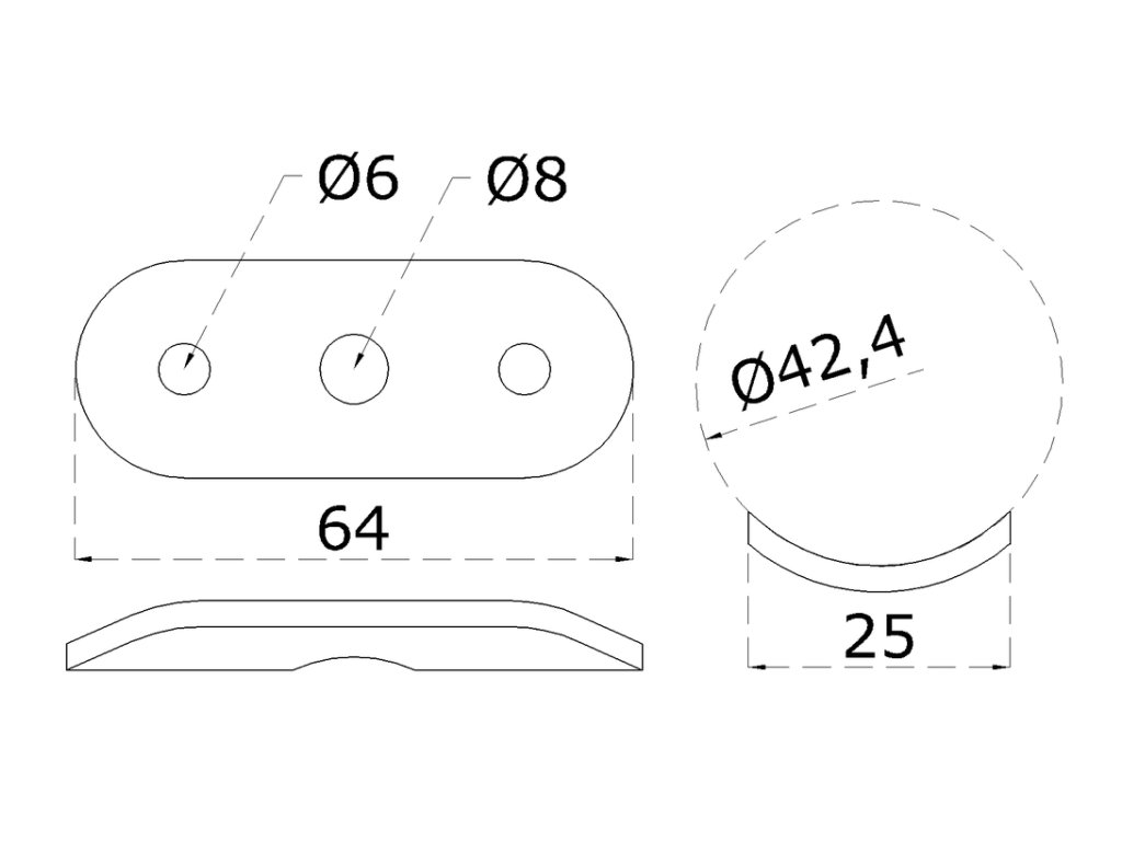 držiak madla pevný na trubku ø 42.4mm (77x64mm), brúsená nerez K320 /AISI304, narážacíDodatočné parametre