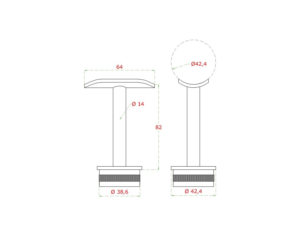 Držiak madla pevný na trubku ø 42,4 mm (77x64 mm), brúsená nerez K320 / AISI304, narážací, farba: PVD - čiernaDodatočné parametre