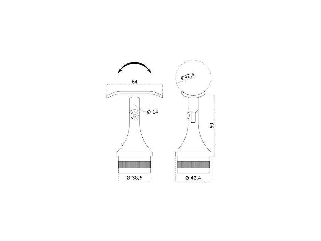 držiak madla s kĺbom na trubku ø 42.4mm (69x64mm), brúsená nerez K320 /AISI304
