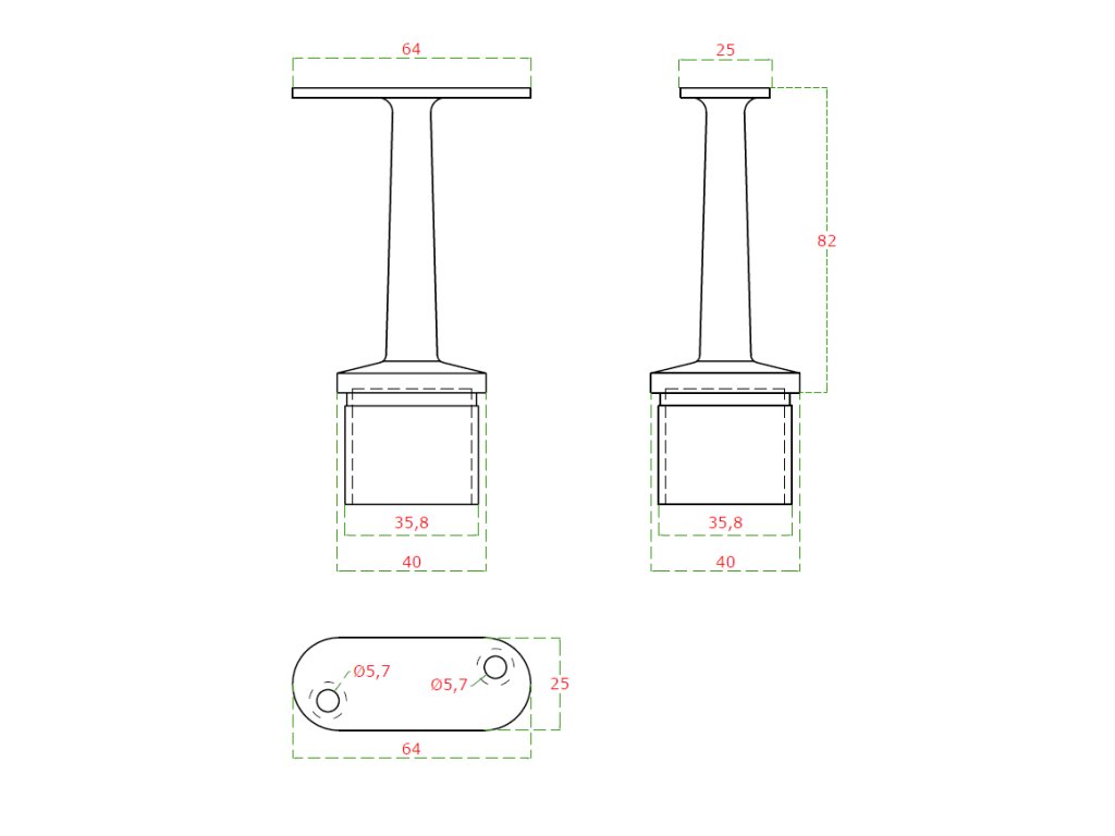 držiak madla pevný /plochý (65x81mm), brúsená nerez K320 /AISI304Dodatočné parametre