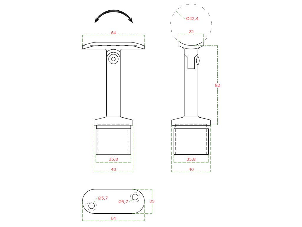držiak madla s kĺbom, na madlo trubku ø 42.4mm (63x81mm), brúsená nerez K320 /AISI304Dodatočné parametre