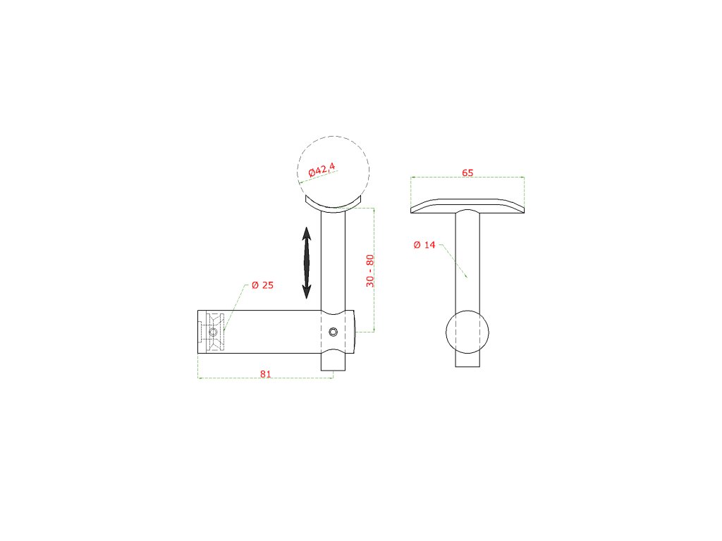 držiak madla pevný /ploché uchytenie na jakel /madlo ø 42.4mm, brúsená nerez K320 /AISI304Dodatočné parametre