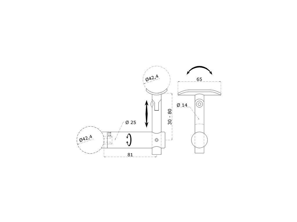 držiak madla s kĺbom, uchytenie na trubku ø 42.4mm/madlo ø 42.4mm, brúsená nerez K320 /AISI304Dodatočné parametre