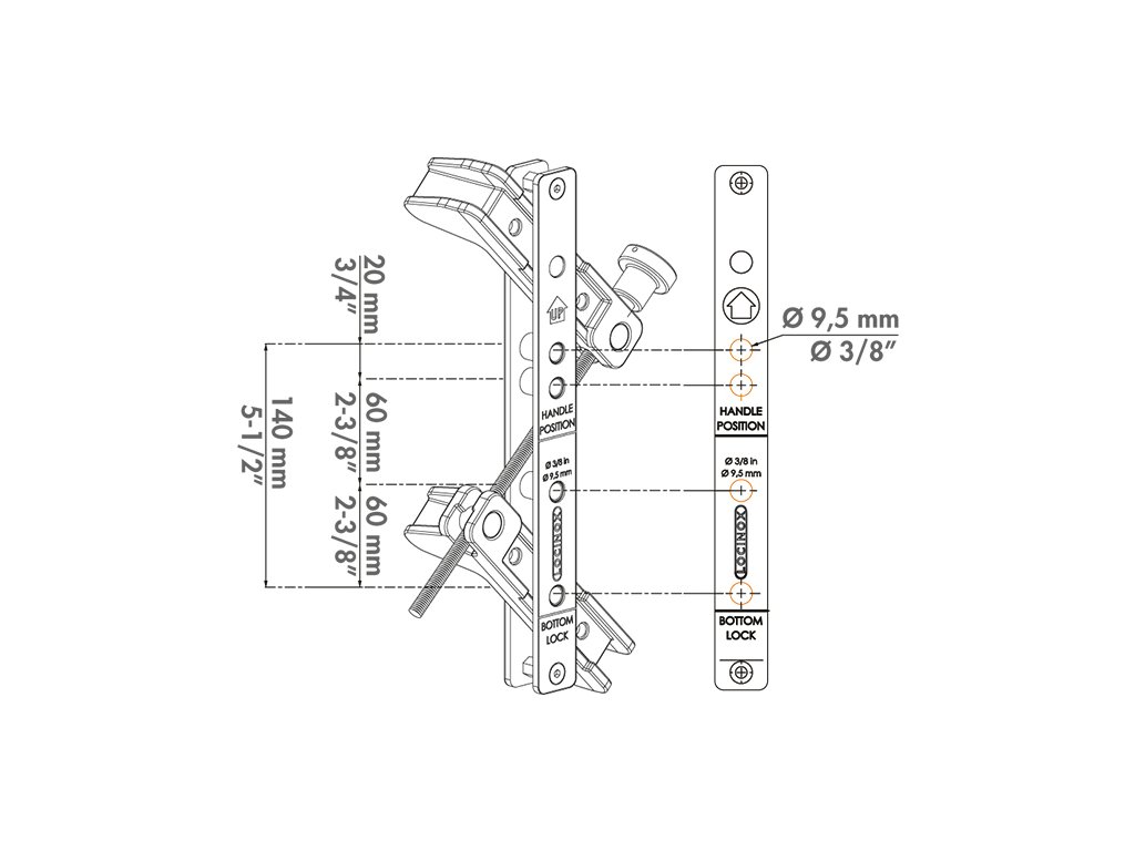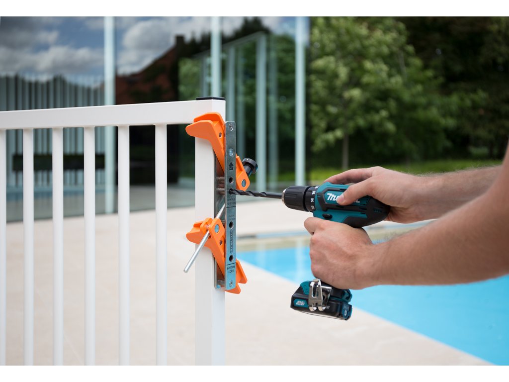 Sada náradia pre rýchlu a presnú montáž zámkov a dorazových líšt LOCINOX®. Pomocou prípravku DRILL-FIX ľahko vystredíte a vyvŕtate otvory na okrúhly, štvorcový alebo obdĺžnikový profil. DRILL-FIX sa dodáva v praktickom a pevnom kufríku, ktorý obsahuje potrebné náradie a prípravky na inštaláciu zámkov a dorazových líšt Locinox.Šablónu možno použiť na okrúhly, štvorcový alebo obdĺžnikový profil