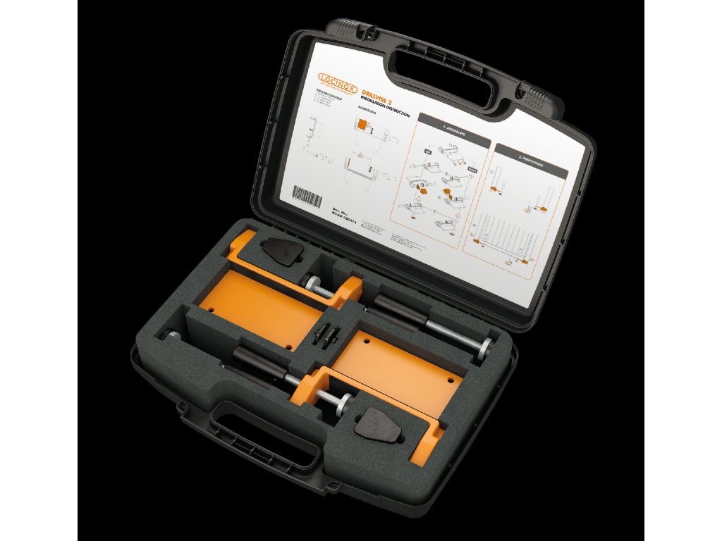 Praktická sada zosilnených oceľových svoriek na prípravu pred montážou (uchytenie a polohovanie montovaných častí na rám brány resp. na stĺpik).Náradie LOCINOX® DRILLVISE-2 ulahčuje prípravu a montáž pántov, zatváračov brány a iného príslušenstva.