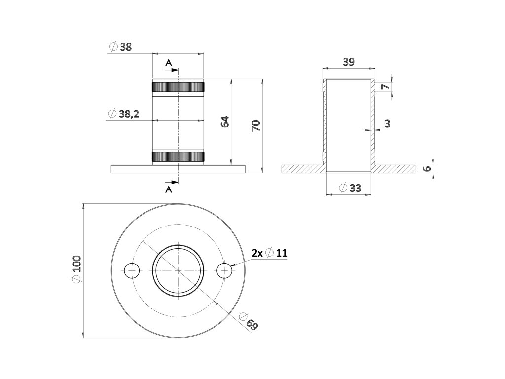 kotviaca platňa (ø 100mm) na trubku ø 42.4mm, brúsená nerez K320 /AISI304Dodatočné parametre
