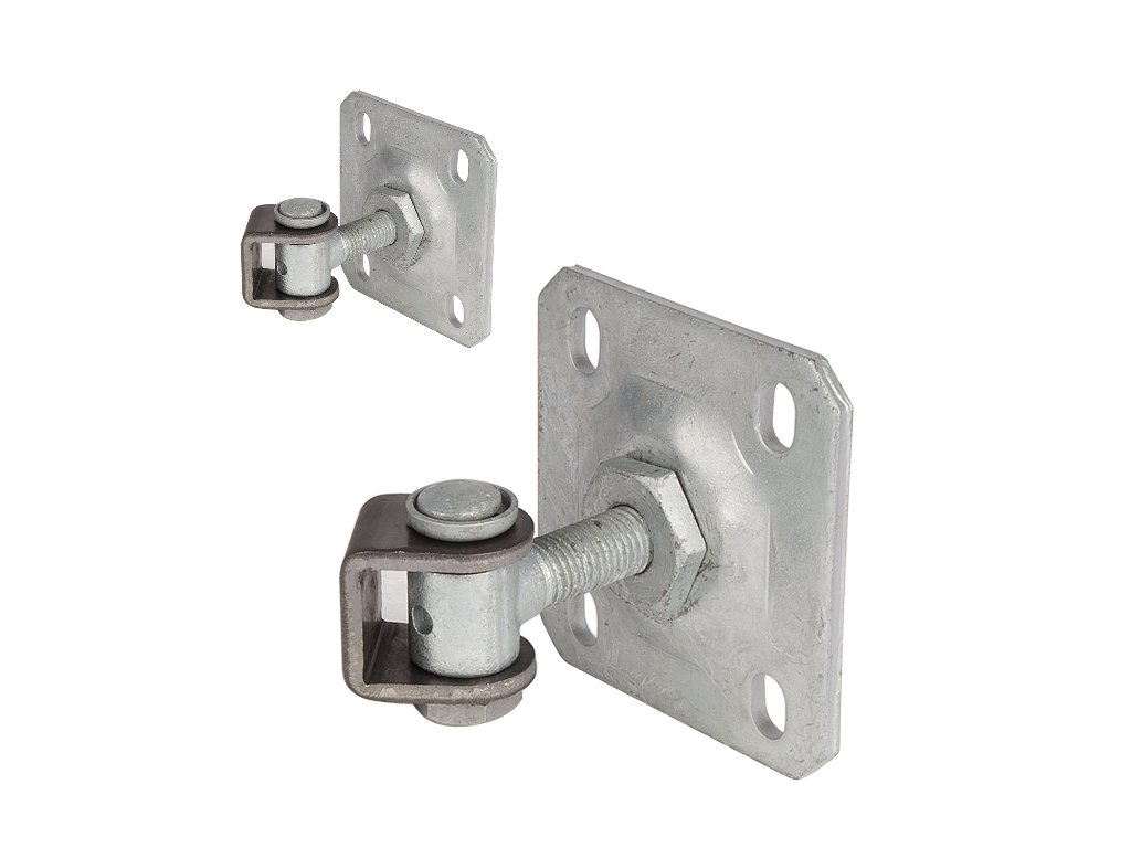 Záves M20 otvárateľný 90° s montážnou platňou 100 x 100 mm. Zvýšená ochrana ANTIVANDAL prevedenie (pri zatvorenej bráne nie je možné manipulovať so závesnou skrutkou a s okom). Nastaviteľný 27 mm na šírku (X).Otvárateľný 90°