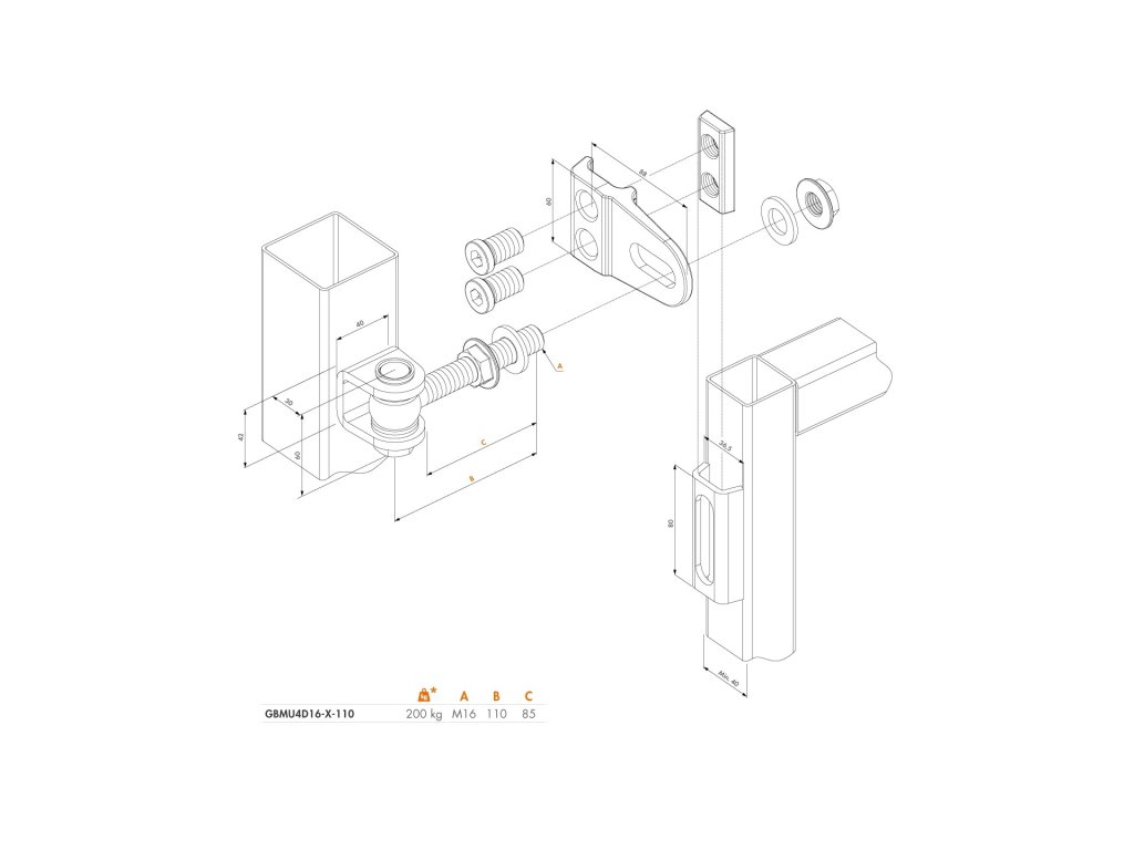 LOCINOX® GBMU4D16 navárací záves M16, otvárateľný 180°, nastaviteľný 3D, čiastočne pozinkovaný