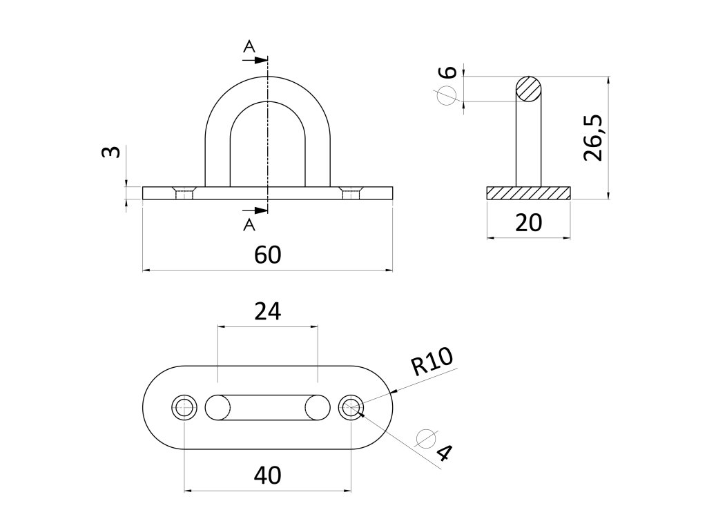 nástenný úchyt lanka okrúhly, ø obľúka 6.0mm, brúsená nerez K320/ AISI304Dodatočné parametre