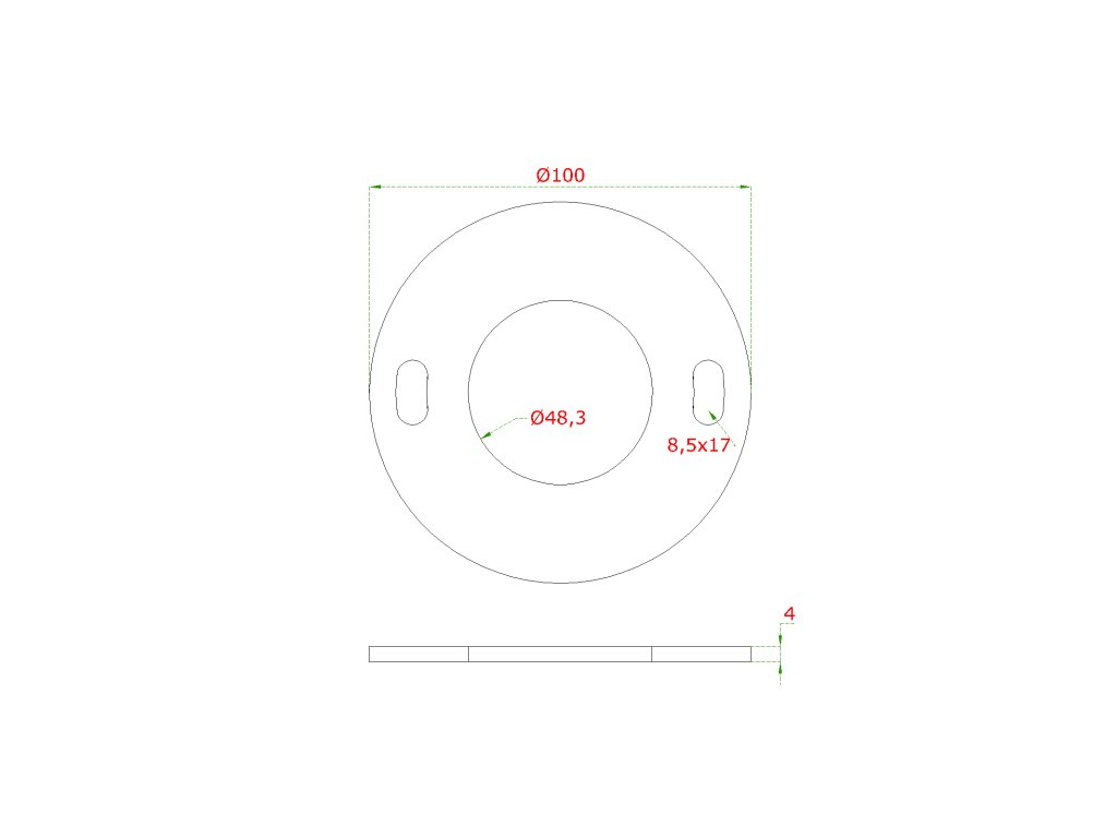 kotviaca platňa (ø100x4mm) na trubku ø 48.3mm (otvor ø48.4mm), bez povrchovej úpravy /AISI304