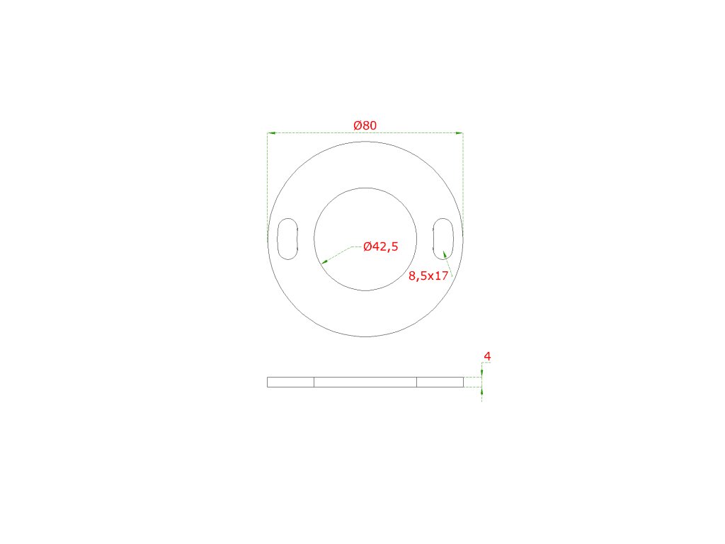 kotviaca platňa (ø80x4mm) na trubku ø 42.4mm (otvor ø42.5mm), bez povrchovej úpravy/AISI304