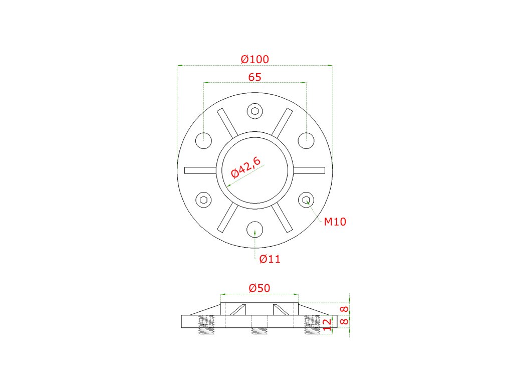 nastaviteľná príruba na trubku ø 42.4mm (ø 100/8-15mm), nerez K320 /AISI304