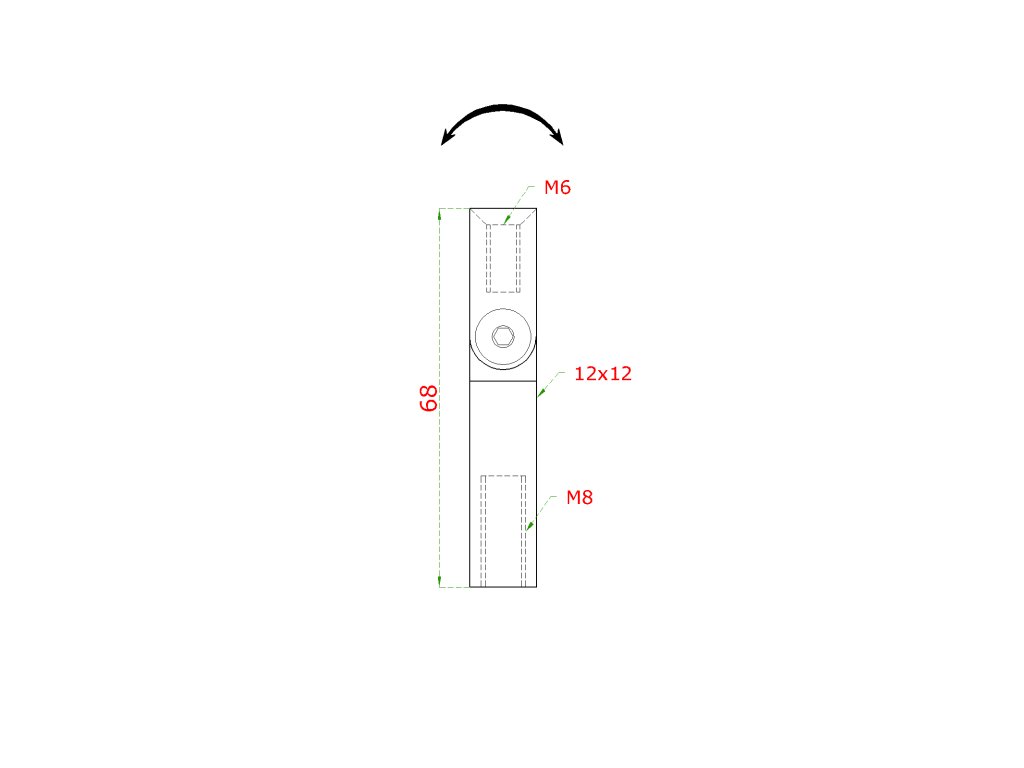 čap s kĺbom (12x12mm, L: 68mm /vnútorný závit M6 - vnútorný závit M8x25mm), brúsená nerez K320 /AISI304