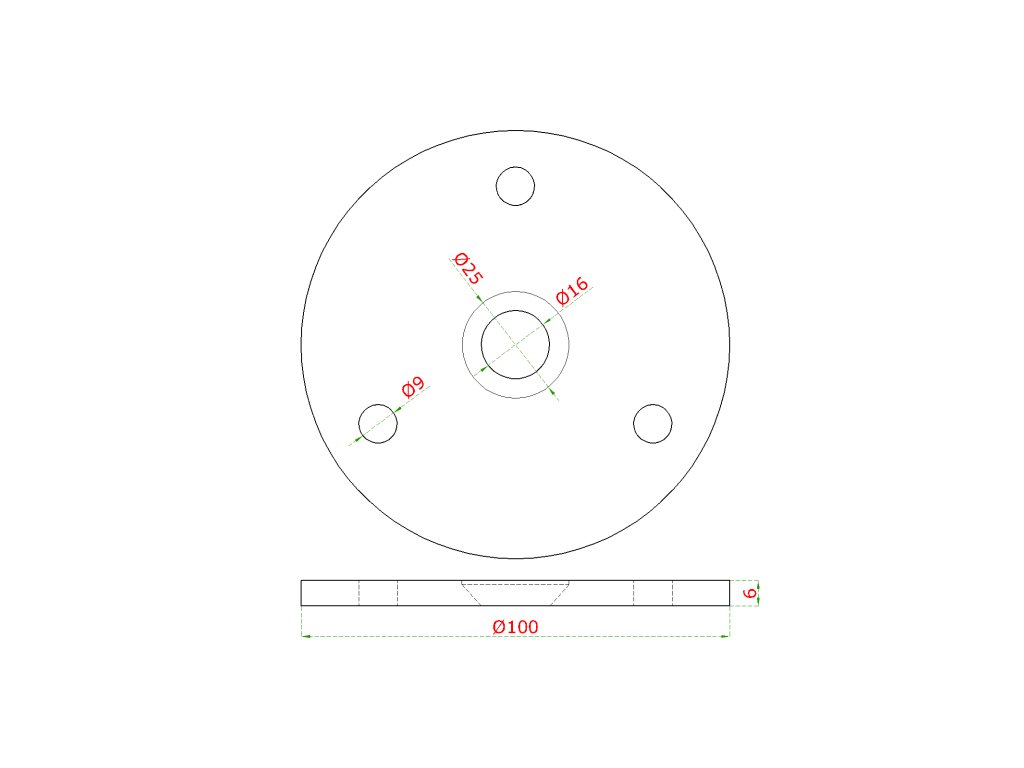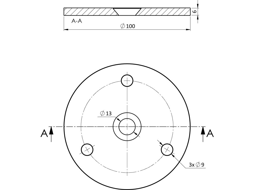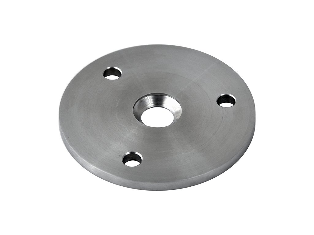 kotviaca platňa (ø 100x6mm) na drevený stĺp, otvor: ø 25/13mm, brúsená nerez K320 /AISI304