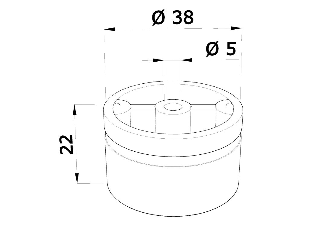 medzikus (ø 38mm) na drevené madlo, nerezové ukončenie madla EB1-ND41, nerez bez povrchovej úpravy /AISI304