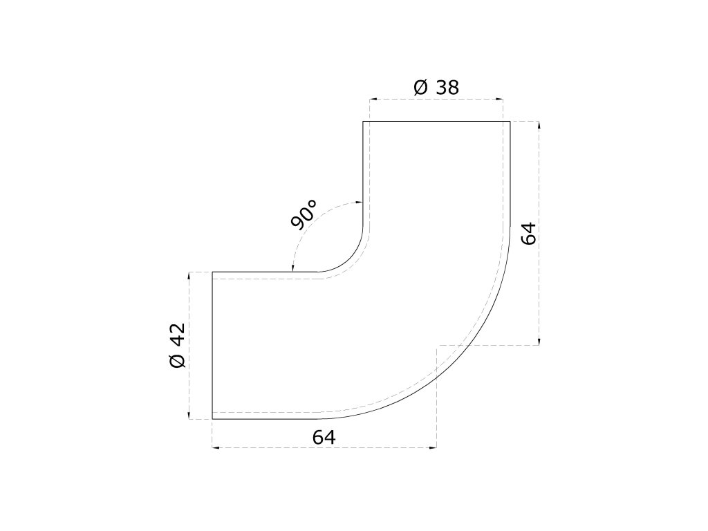 spojovací oblúk s medzikusmi (ø 42mm), 90st., na drevené madlo, brúsená nerez K320/ AISI304