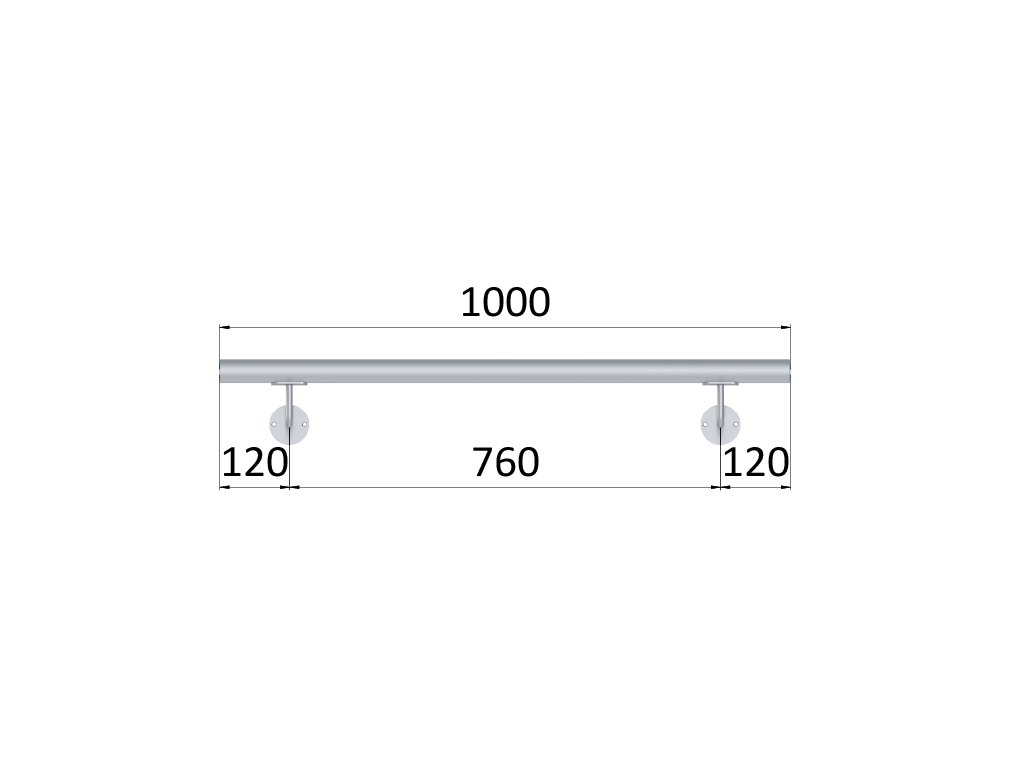 madlo 1000mm (set:2ks úchyt, madlo ø 42.4mm s ukončením), brúsená nerez K320 /AISI304