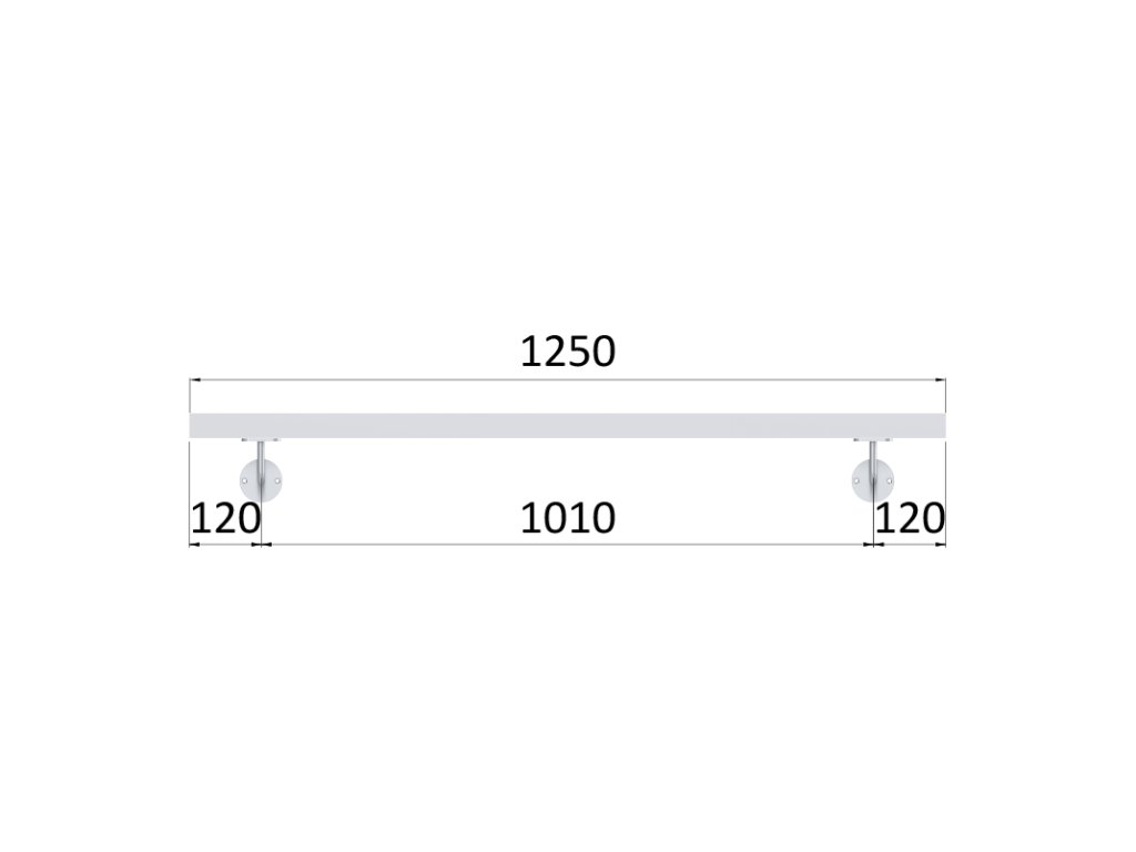 Madlo 1250mm (set:2ks úchyt, madlo 40x40mm s ukončením), brúsená nerez K320 /AISI304