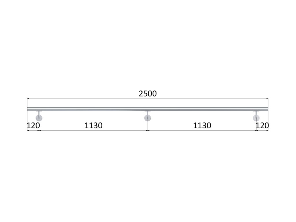 madlo 2500mm (set:3ks úchyt, madlo ø 42.4mm s ukončením), brúsená nerez K320 /AISI304