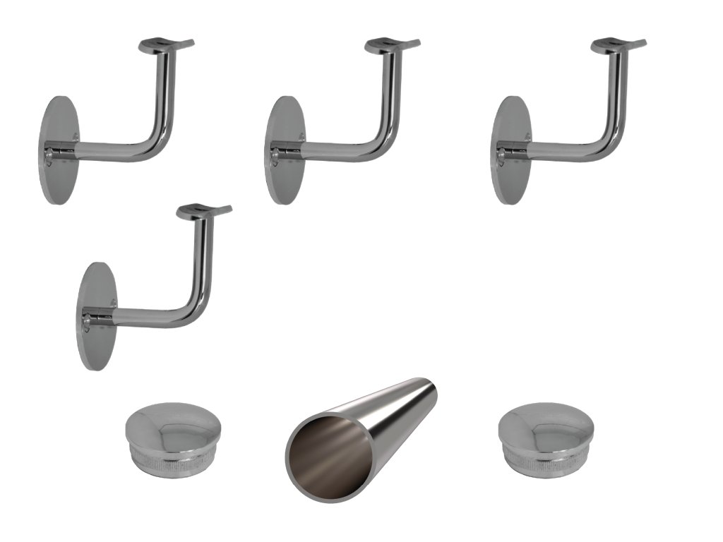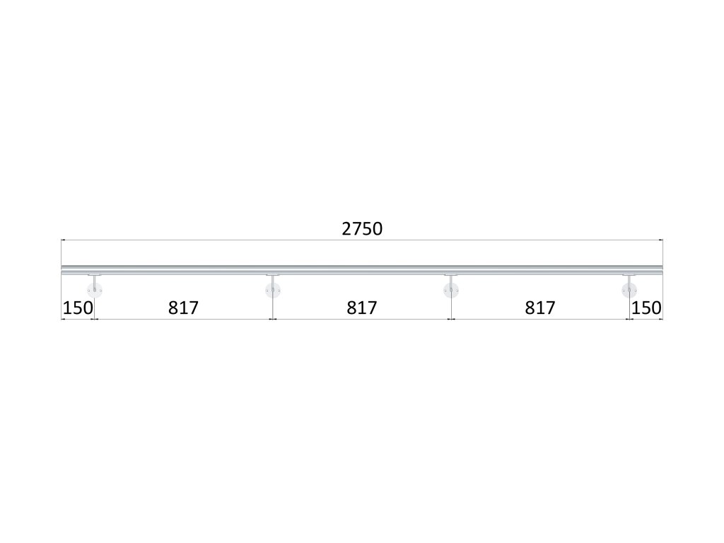 madlo 2750mm /leštená nerez /AISI304, set:4ks úchyt, madlo ø 42.4mm s ukončením