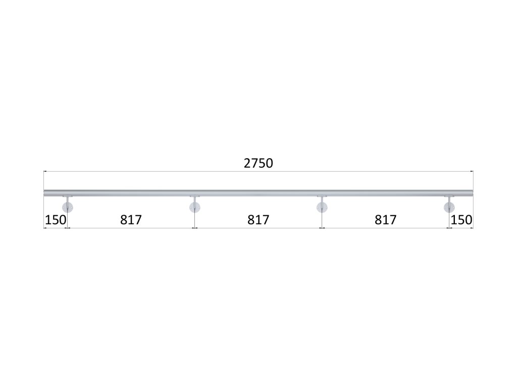 madlo 2750mm (set:4ks úchyt, madlo ø 42.4mm s ukončením), brúsená nerez K320 /AISI304Dodatočné parametre