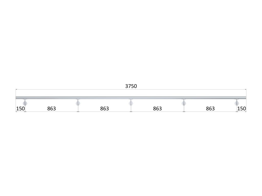 madlo 3750mm (set:5ks úchyt, madlo ø 42.4mm s ukončením), brúsená nerez K320 /AISI304Dodatočné parametre