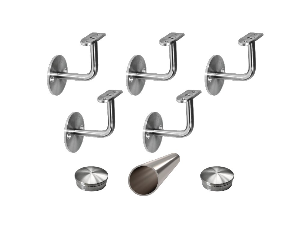 madlo 4750mm /brúsená nerez K320 /AISI316 set: 5ks úchyt, madlo ø 42.4mm s ukončením