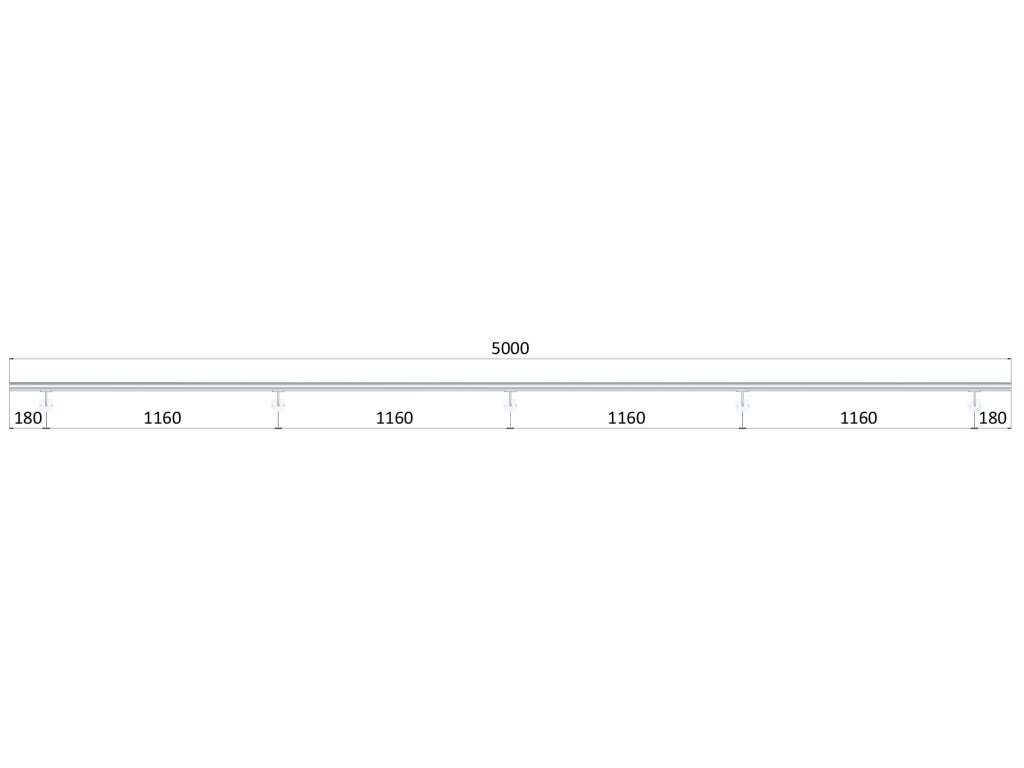 madlo 5000mm /leštená nerez /AISI304, set:5ks úchyt, madlo ø 42.4mm s ukončením